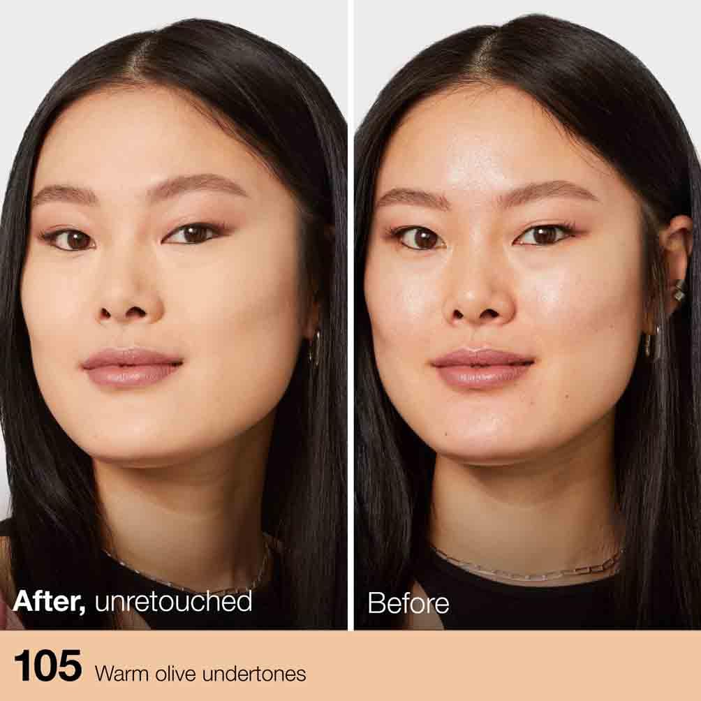 • The ultralightweight formula is enriched with flexible micro-powders to control shine whilst also blurring pores throughout the day, Giving you a skin perfecting dewy finish that lasts