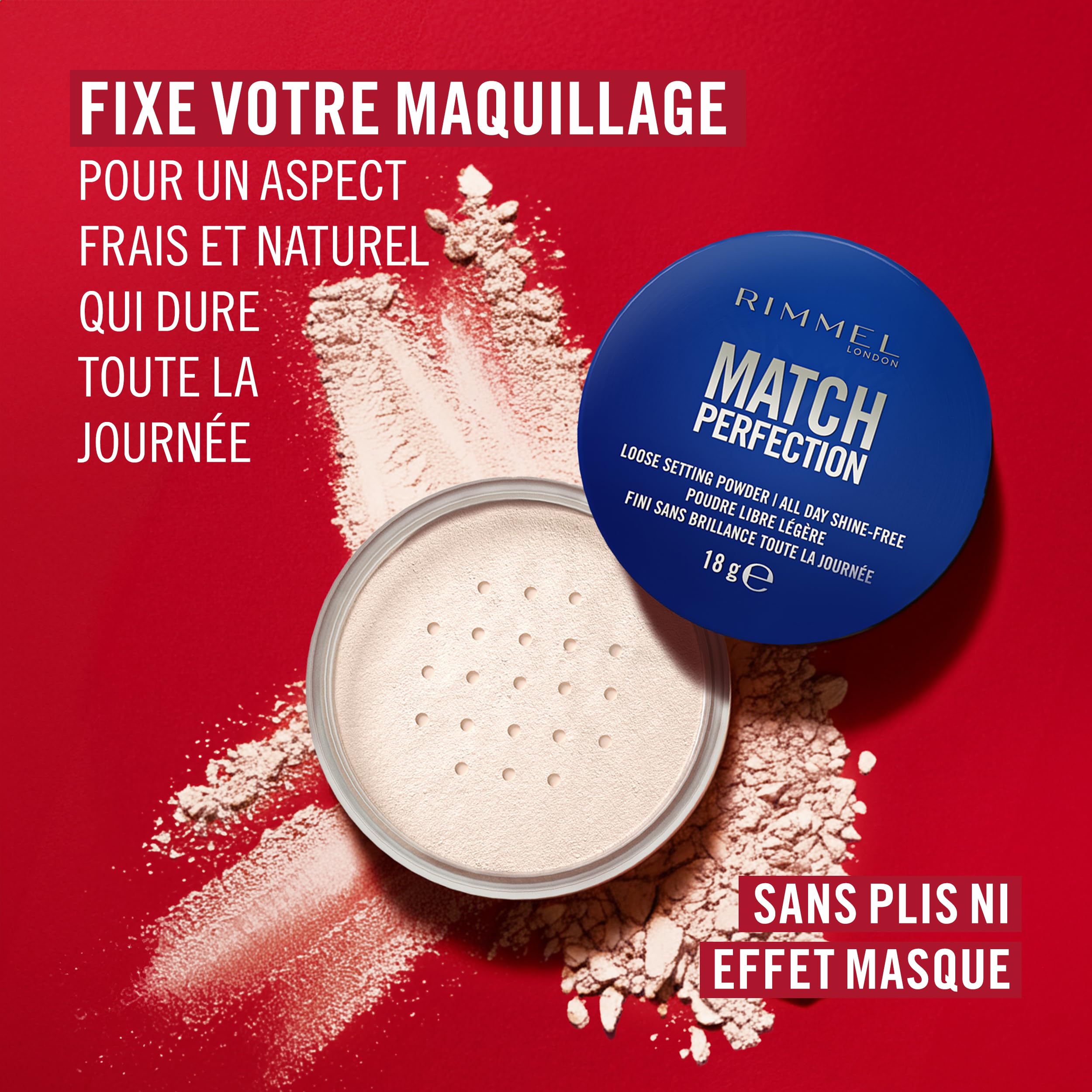 • Rimmel Match Perfection Loose Setting Powder sets your makeup and keeps you looking fresh and natural all day.